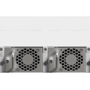 The two hot-swap power supplies support a high input voltage range: 100-240V. The board itself uses up to 45W of power, while the total maximum power consumption goes up to 77W with all the attachments. It can be a bit more power-hungry than the CRS504, but you would be too if you had 16x 25-Gigabit ports, wouldn’t you?
