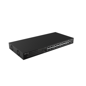 24*10/100Mbps Base-TX Ports(POE, Max PoE budget:180W) ,2*10/100/1000Mbps Base-T with 1Combo Uplink Ports.