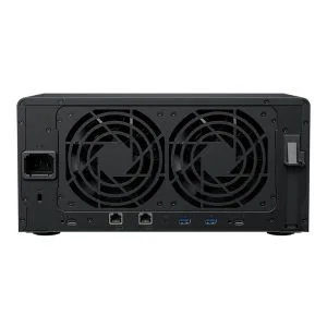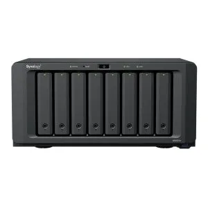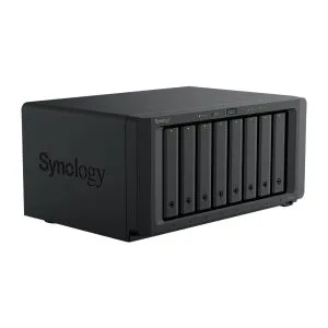 The DS1825+ features built-in 2.5GbE networking and supports both SATA SSDs and HDDs in 2.5″/3.5″ internal bays, as well as M.2 NVMe drives via M.2 slots for use as cache. Its support for expansion cards allows configuration flexibility, supporting faster networking of up to 25GbE.