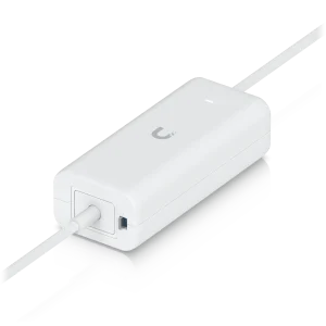 An AC adapter with integrated PoE, enabling the UniFi Cloud Gateway device to support PoE output on a single port.