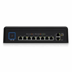 UniFi Switch Industrial is a managed switch with ten Gigabit 8p8c (RJ45) ports. Eight of them are capable of PoE power distribution and feature automatic connection type detection, including support for the latest 802.3bt PoE++ standard and provide up to 60 W of power (per port) to power multiple devices on the network, while the other two are dedicated to uplink/downlink.