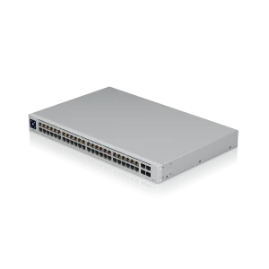 The Switch 48 PoE (USW 48 PoE) is a fully managed switch with (48) GbE RJ45 ports, including (32) GbE, PoE+ ports, and (4) 1G SFP ports. The versatile USW 48 PoE provides Gigabit PoE links to Ethernet devices while also supplying Gigabit fiber uplink options fit for an enterprise network. The switch also offers an extensive suite of Layer 2 switching protocols, including port-specific operation modes (switching, mirroring, or aggregate), and features a 1.3″ LCM color touchscreen that concisely displays key system and connection insights. This switch can also be monitored or configured from anywhere with the powerful, intuitive UniFi Network web application and mobile app.